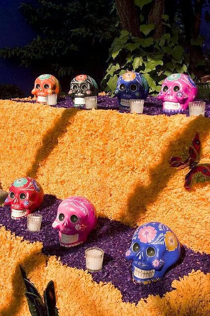 ánima, al marcharse se vaya contenta. El 31 de octubre, el alhelí y la nube no pueden faltar pues el blanco significa pureza y ternura y acompañan a las ánimas de los niños. En muchos lugares se acostumbra poner caminos de pétalos que sirven para guiar al difunto del panteón a la ofrenda y viceversa, para esto se usa el cempasúchil.