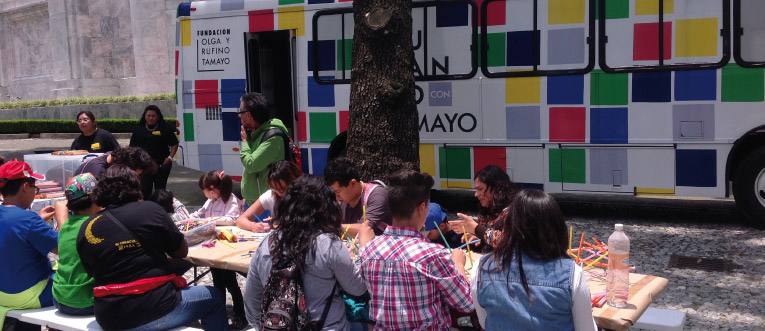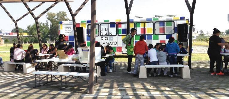 Jugando con Tamayo es una experiencia educativa del Museo Tamayo que trabaja de forma lúdica el universo creativo de Rufino Tamayo, a bordo de un autobús equipado como galería y taller de arte móvil. Su objetivo es sensibilizar y desarrollar habilidades sociales a través del arte contemporáneo, así como de la obra, vida y legado del artista oaxaqueño.